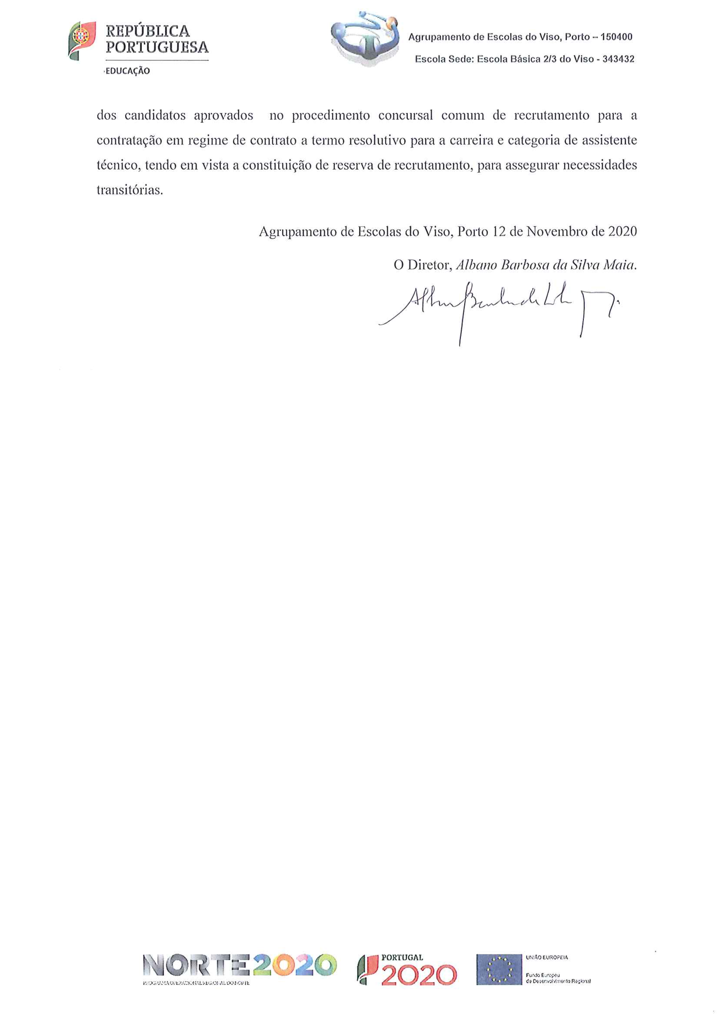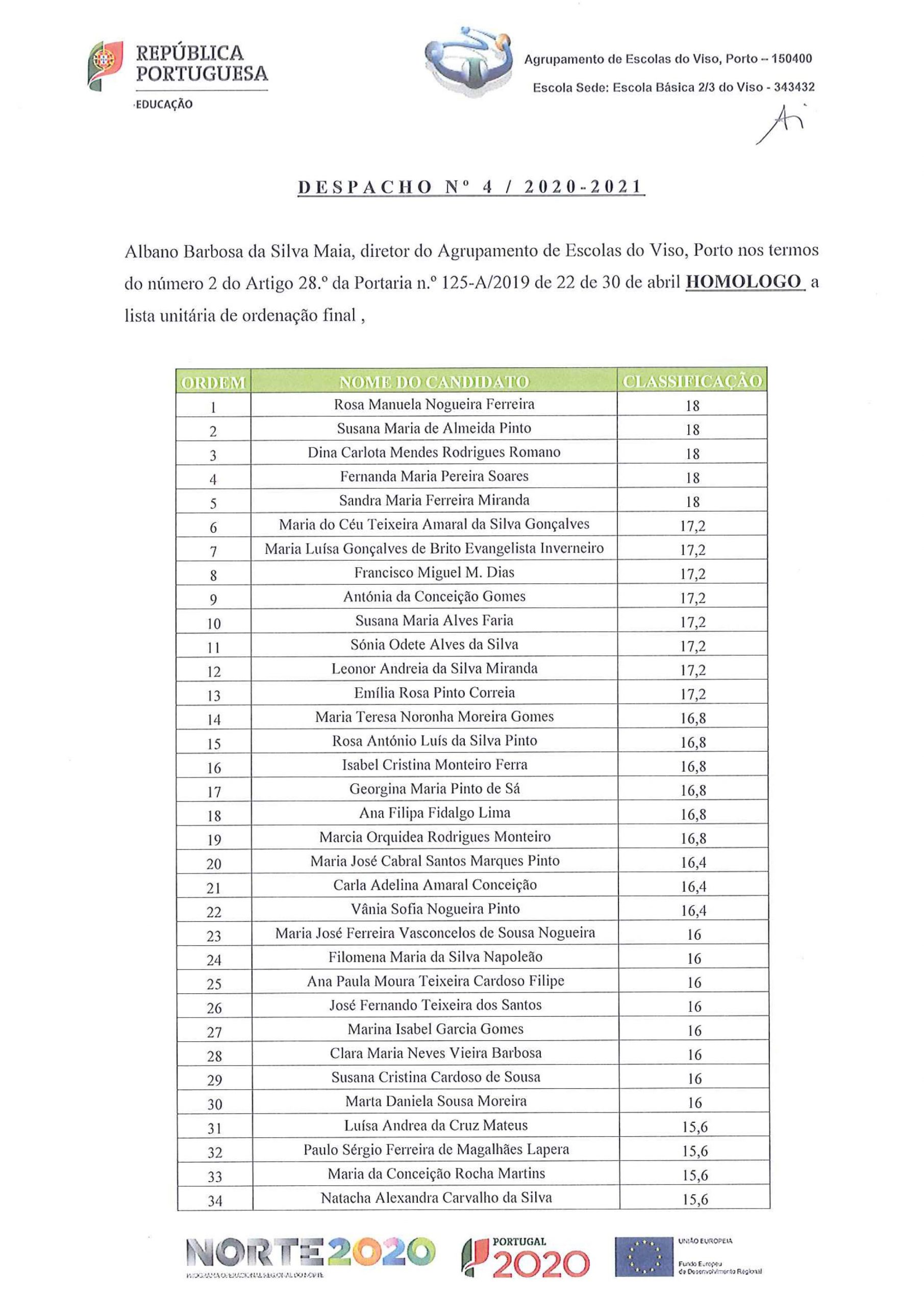 Despacho de Homologação Bolsa de Recrutamento Assistentes Técnicos
